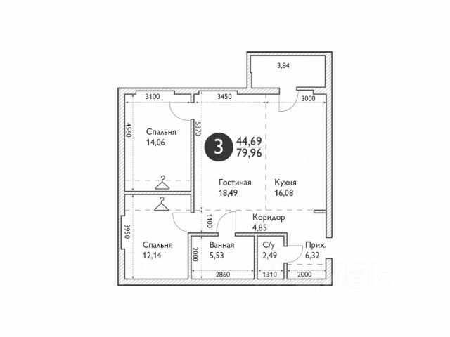 - Общая площадь: 80 м2
