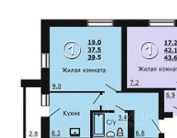 - Общая площадь 39.2 м2
