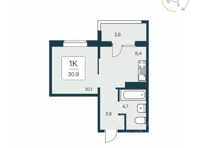 - Общая площадь: 31.3 м2