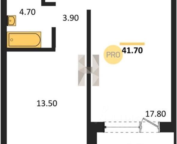 - Общая площадь 41.7 м2
