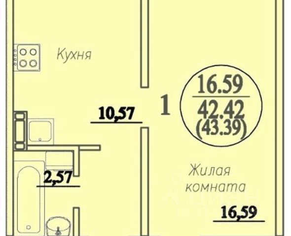 - Общая площадь 42.6 м2