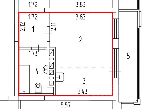 - Общая площадь 26.8 м2