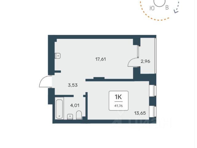 - Общая площадь: 41.8 м2