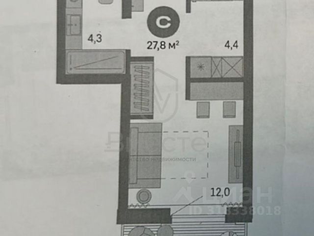 - Общая площадь: 27.8 м2