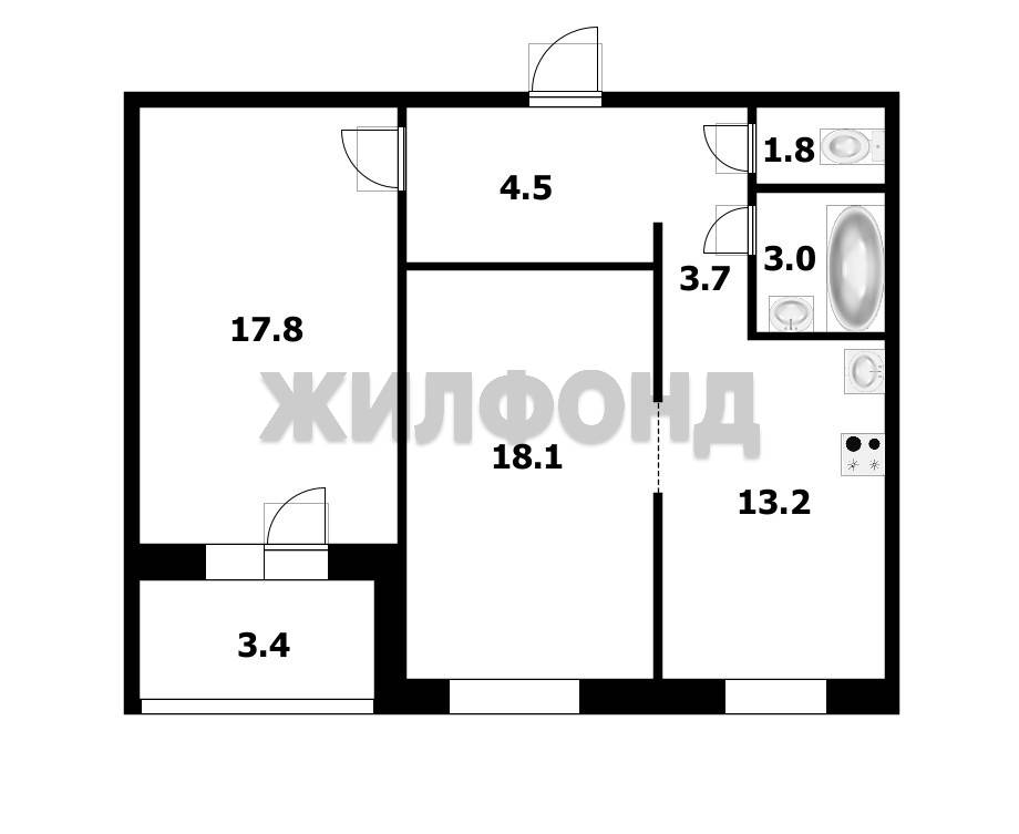 - Общая площадь: 61.6 м2