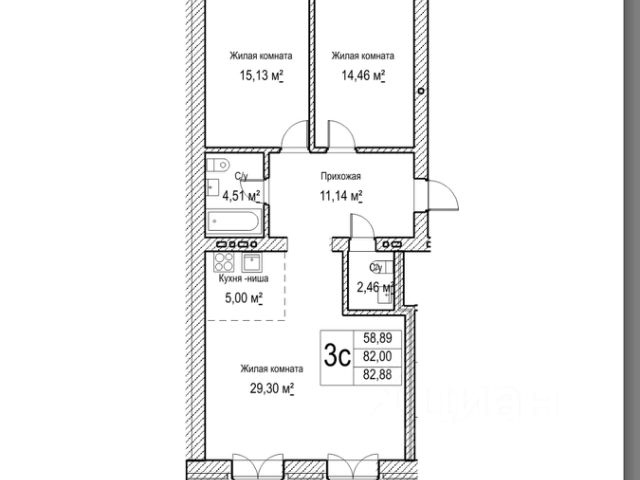 - Общая площадь: 82.8 м2