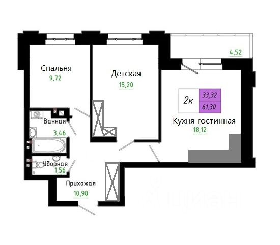 - Общая площадь: 60 м2