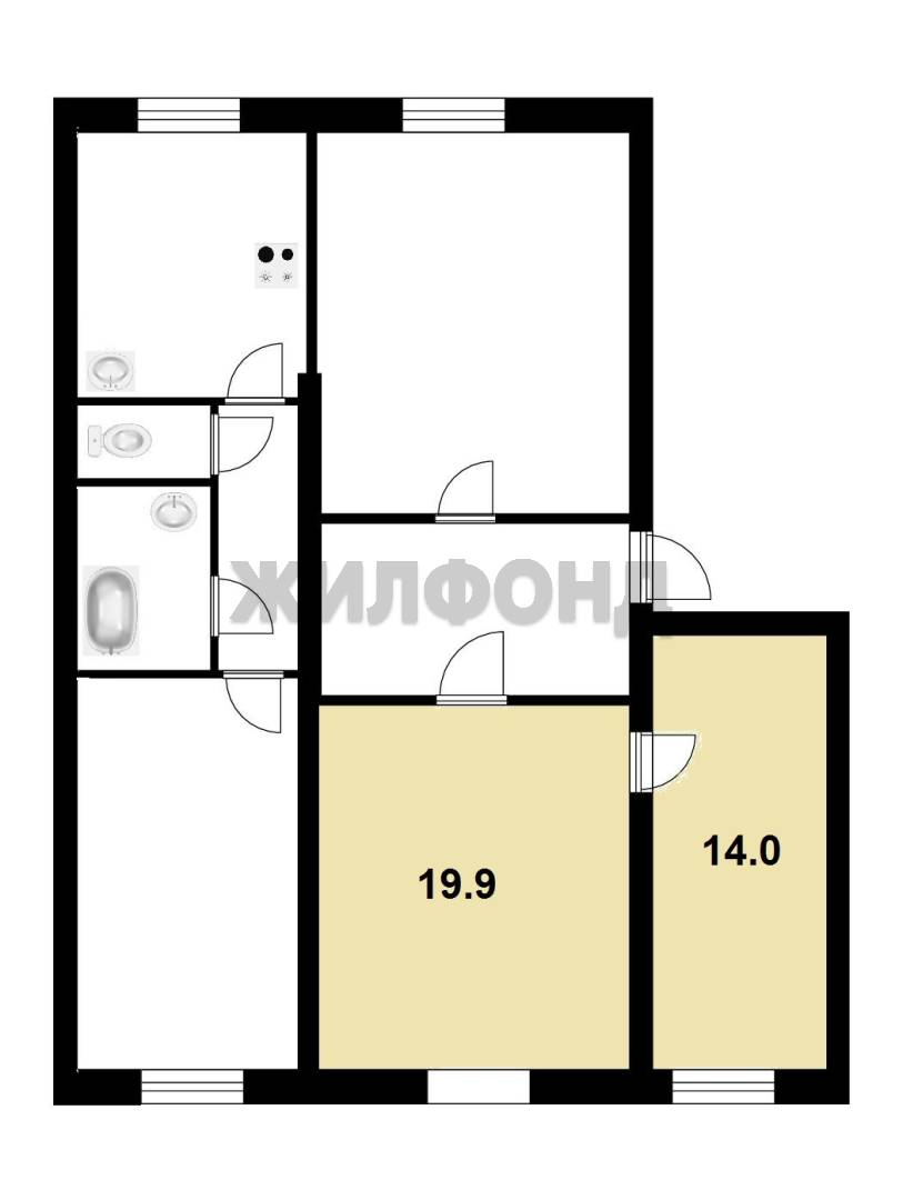 - Жилая площадь: 33.9 м2