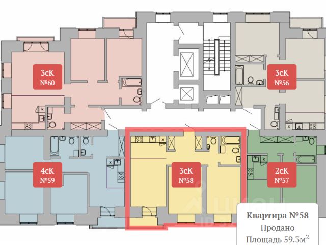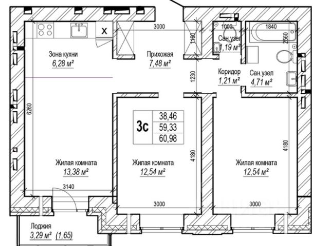 - Общая площадь: 60 м2