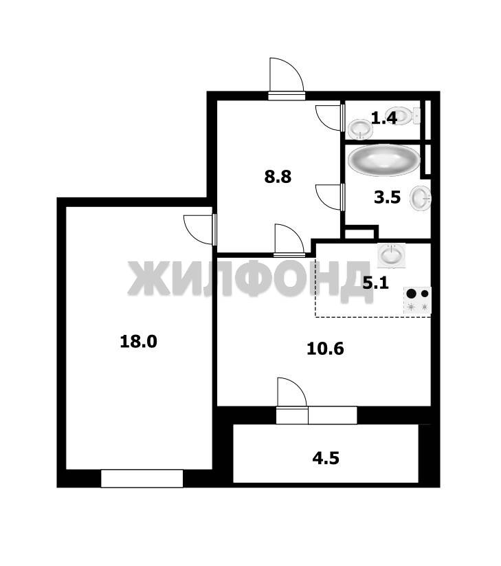- Жилая площадь: 28.5 м2