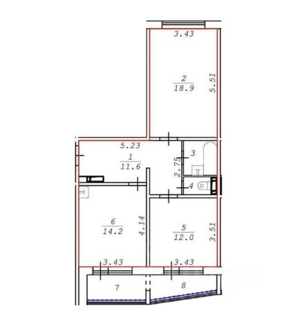 - Общая площадь 60.9 м2