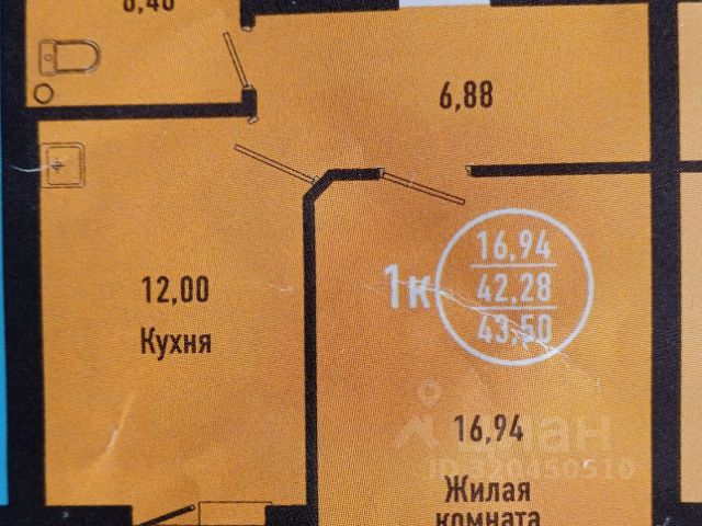 - Общая площадь: 43.5 м2