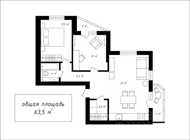- Общая площадь 56 м2