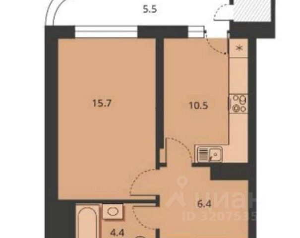 - Общая площадь: 37.1 м2
