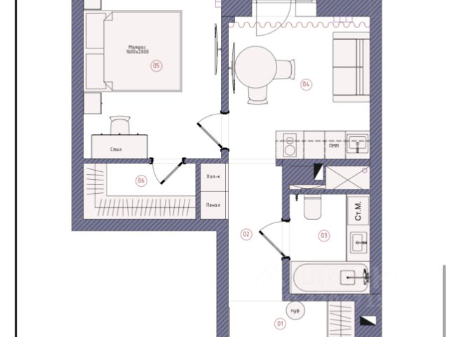 - Общая площадь 39 м2