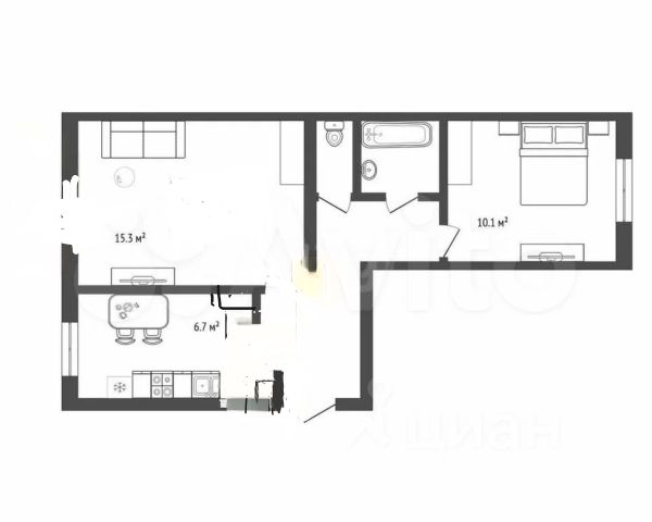 - Общая площадь 43.7 м2