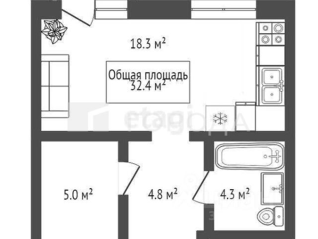 - Общая площадь 32.4 м2