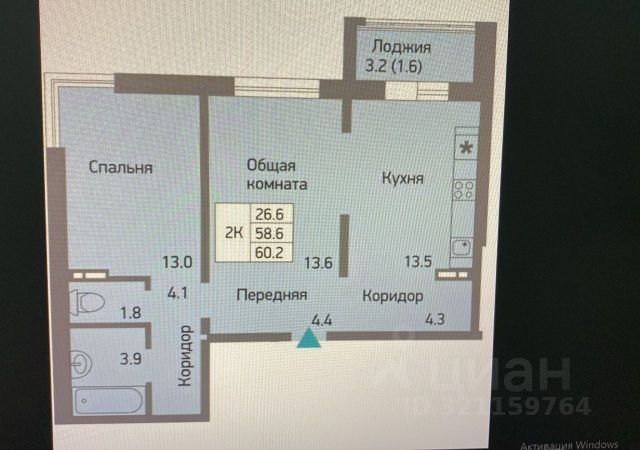 - Общая площадь: 57.9 м2