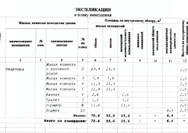 - Общая площадь: 70.6 м2