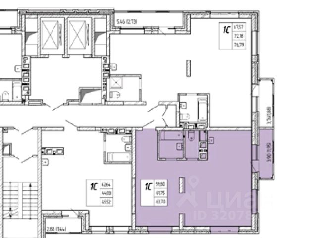 - Общая площадь: 61.8 м2