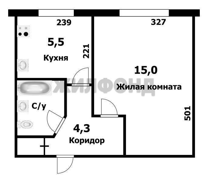 - Жилая площадь: 17 м2