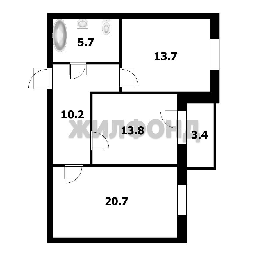 - Общая площадь: 64.1 м2