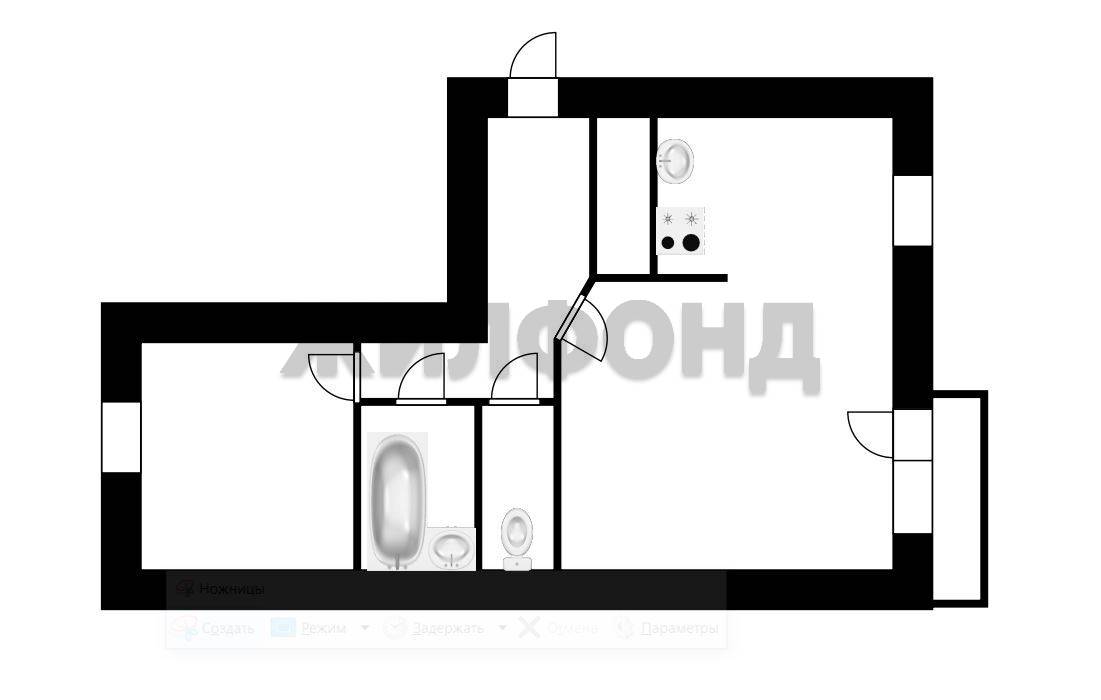 - Общая площадь: 43.4 м2