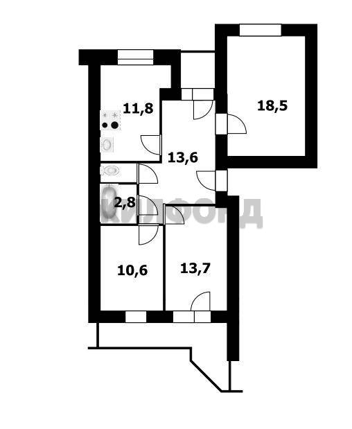 - Площадь кухни: 11.8 м2