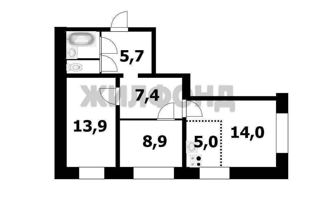 - Общая площадь: 58.9 м2