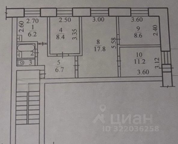 - Общая площадь 62.1 м2