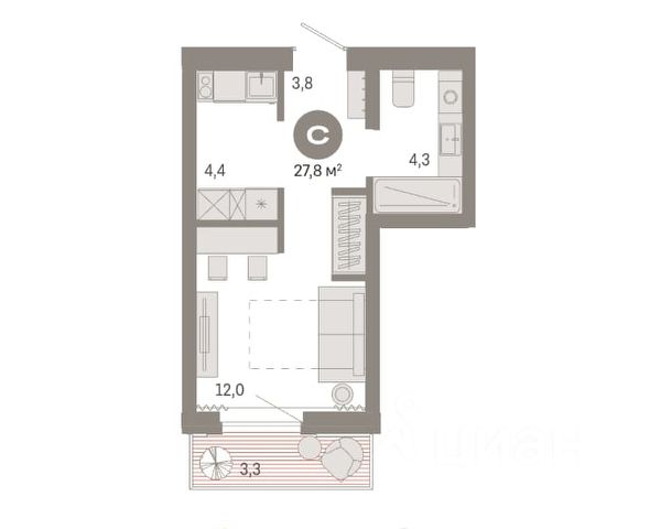 - Общая площадь: 27.8 м2