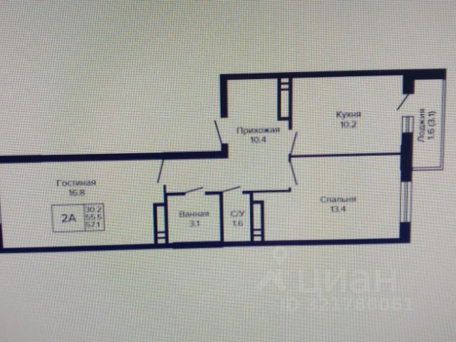 - Общая площадь 55.3 м2