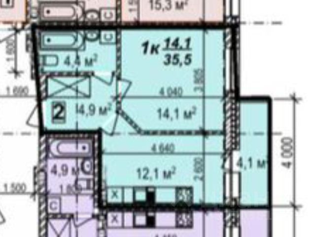 - Общая площадь: 35.5 м2