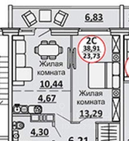 - Общая площадь 38.9 м2