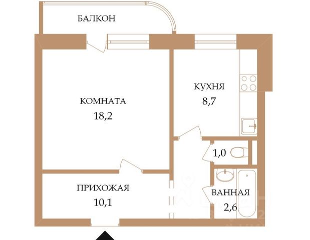 - Общая площадь 40.6 м2