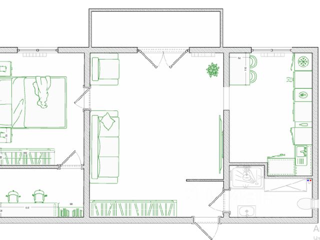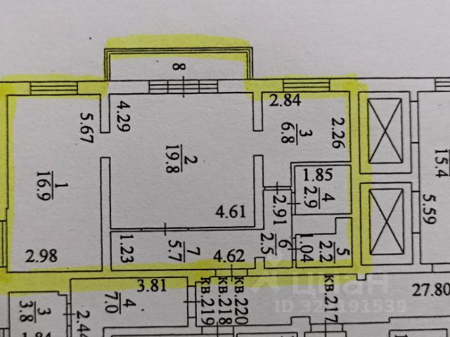 - Общая площадь: 57 м2