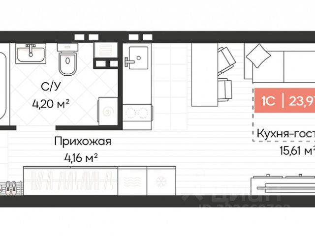 - Общая площадь: 24.2 м2
