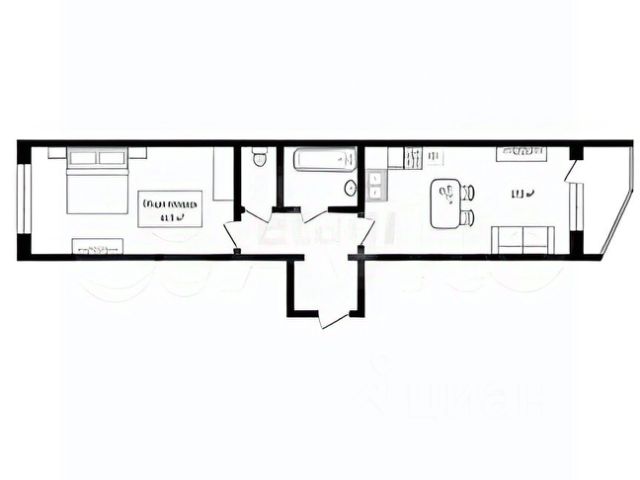 - Общая площадь: 46 м2