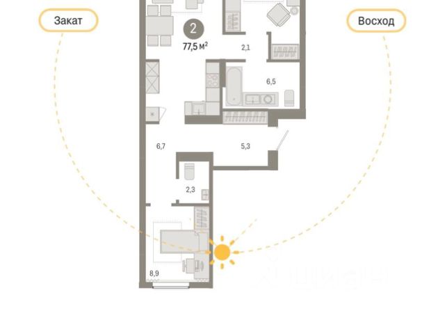 - Общая площадь: 73.2 м2