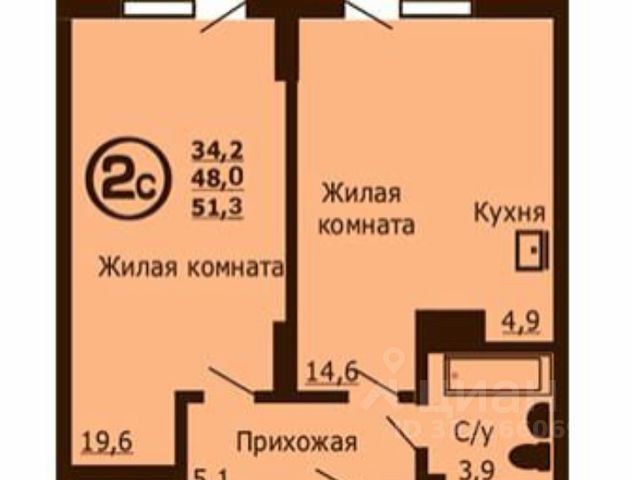 - Общая площадь: 51.3 м2
