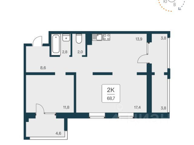 - Общая площадь: 68.9 м2