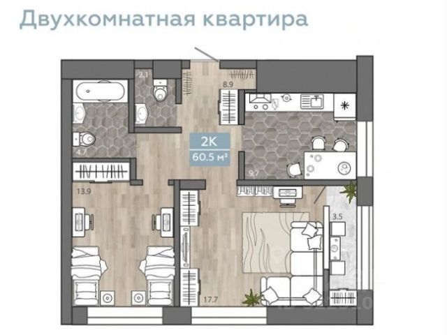 - Общая площадь: 56 м2