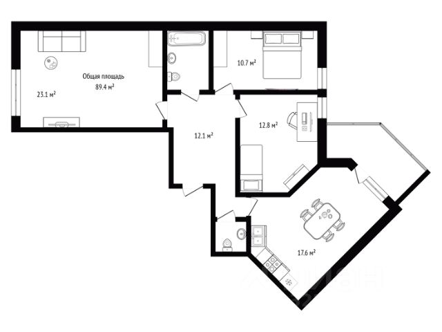 - Общая площадь: 89.4 м2