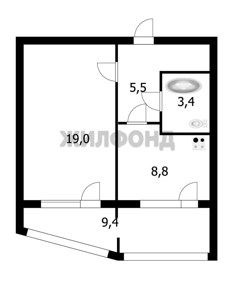 - Жилая площадь: 19 м2
